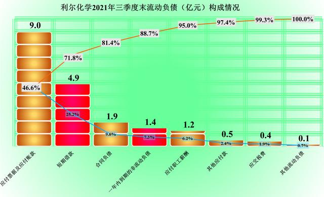 利尔化学的主要流动负债是“应付票据及应付账款”、“短期借款”和“合同负债”,“合同负债”类似于“预收账款”,这是用“存货”就可以清偿的,无需耗用现金。短期有息负债(“短期借款”加“一年内到期的非流动负债”)也就才6.3亿元,还没有其“货币资金”多,短期偿债能力没有大的问题,当然“应付票据和应付账款”并非不需要归还,只是与其现有的营收规模比,这个欠款规模还算正常。