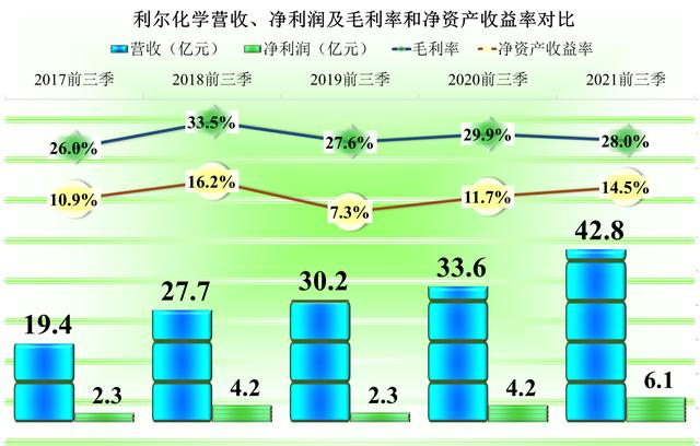 我们也注意到,利尔化学的净利润在2019年前三季度遭遇了大幅下挫,但在2020年前三季度就涨回至2018年同期的水平,2021年前三季度,在此基础上又创下了历史新高。
