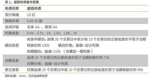 盛路转债此次发行规模10亿,流动性一般。转债下修条款有较明显放宽,更便于发行人灵活规避回售或是促转股,到期赎回回报相比也更加丰厚。以7月16日正股收盘价计算,转债对应的转股价值为106.4元。