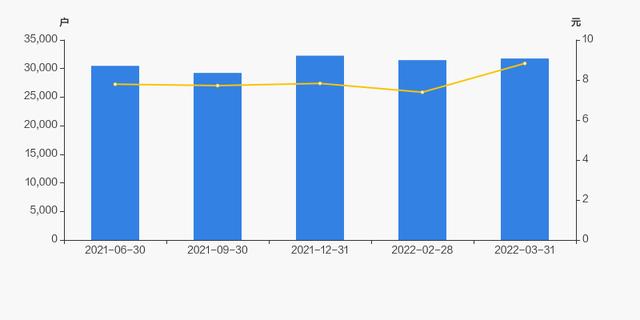 截至2022年3月31日,公司最新总股本为3.53亿股,其中流通股本为3.06亿股。户均持有流通股数量由上期的9735股下降至9648股,户均流通市值8.52万元。