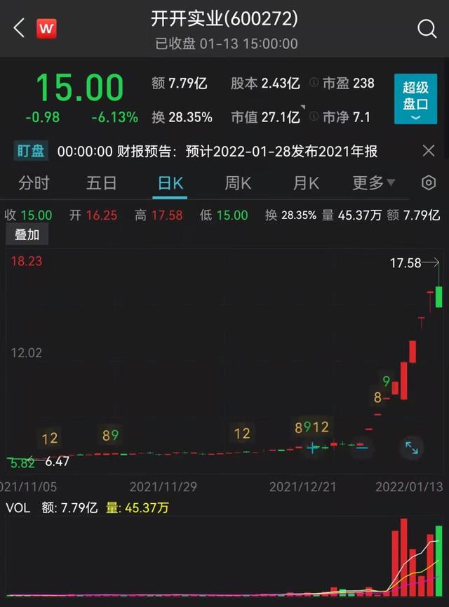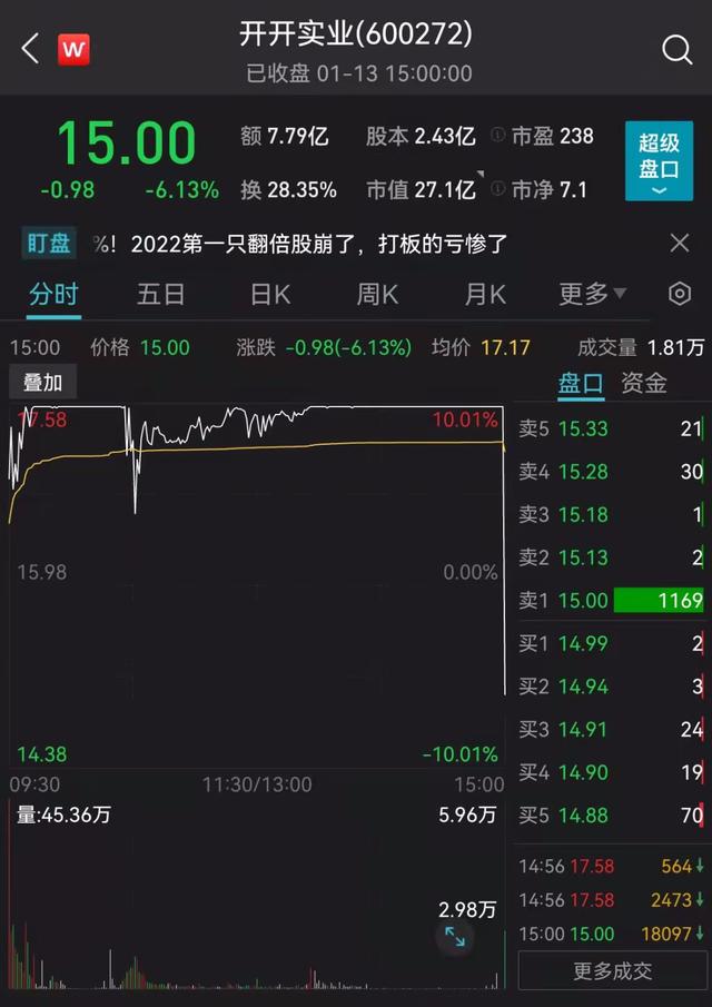 本文摘要:今天,开开实业在集合竞价的最后阶段,上演了“黑色一分钟”:从涨停板直接砸至下跌6.13%,累计跌幅达14.68%。成交量、换手率、龙虎榜等显示,开开实业等前期疯狂上涨的大牛股已经进入博弈的尾声。上演“黑色一分钟”作为2022年首只翻倍的妖股… …