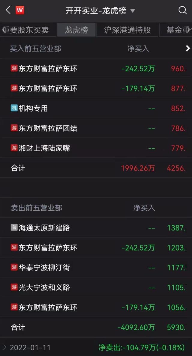 龙虎榜上,机构、游资和散户展开混战。其中,1月13日开开实业龙虎榜上,买一、买二、买四、卖二、卖五席位为散户大本营,买三为机构专用席位,买五、卖三、卖四席位为知名游资。
