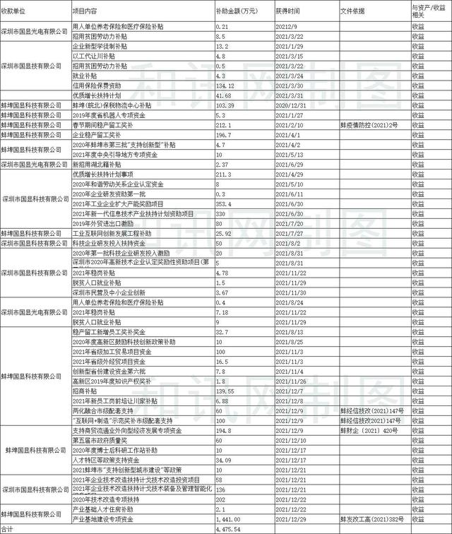 根据2021年年报财务报表的附注显示,2021年凯盛科技政府补助的各类83类,合计金额为1.10亿。据统计,在2021年期间凯盛科技发布6则与政府补助相关的公告,其中与国显科技及其子公司相关的政府补助项目51项,合计金额为4,475.54万元,均与收益相关,占财报附注公布政府补助的43.41%。