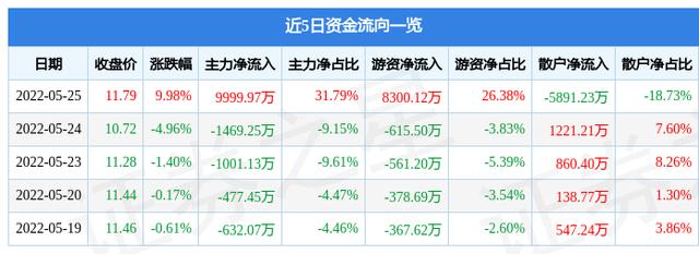 资金流向数据方面,5月25日主力资金净流入9999.97万元,游资资金净流入8300.12万元,散户资金净流出5891.23万元。