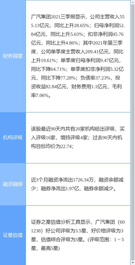 本文摘要:今日广汽集团(601238)创60日新低,收盘报13.99元。2022年1月13日,太平洋研究员白宇发布了对广汽集团的研报《广汽集团:四季度表现超预期,静待2022高速增长》,该研报对广汽集团给出“买入”评级,认为其目标价为24.0元,研报… …