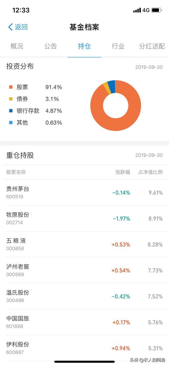 可以看见这虽然是一只混合型基金,但是底层资产股票占了大部分,这跟基金经理的投资理念有关。这是一只偏股型的混合基金