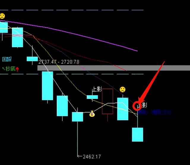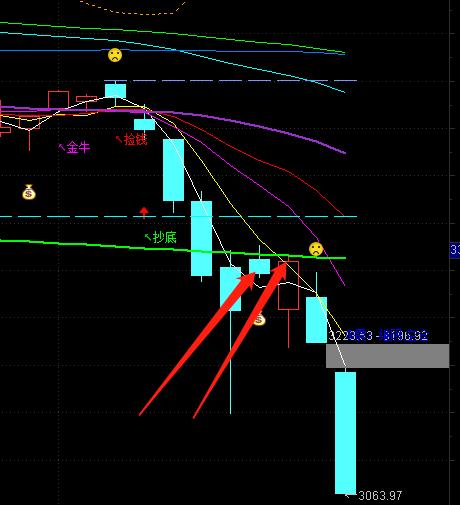 今日大盘跌的比较狠,跌4486家,涨245家。原来分析反抽5线后会有一个下砸,今天这个砸的有些狠,放量下跌的大阴线,这根阴线要吃下来很难。上午盘中有一个反弹,又会套一批补仓和抢反弹的人。下午单边下跌基本没有反抗。后续大盘会继续反抽8线13线,但有一种情况是均线被 大盘下跌带下来与高点相交,也属于反抽。作为股市分析需要对比第二天的走势做一个基本判断 ,但这不是说明天 是涨还是跌,而是,如果涨起来你要怎么操作,跌下去你要怎么操作。技术上大盘会去补上方的缺口,会去反抽8线13线,如果反抽一定要看量,量跟不上,要及时离场。今天这跟阴线要3天之内吃不下来,就会形成下降三法,还要继续下跌。目前大盘日线下方没有支撑线。所以技术上现在不是有效低点。周线上有233周线的支撑,如果一周内收不到233线上,那233支撑失效,还会继续向下寻找支撑。