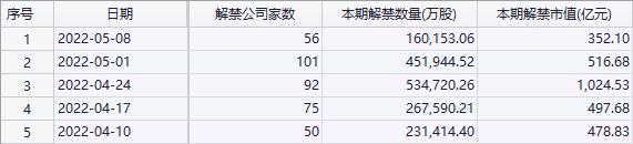 从当下的市值来看,本周A股的解禁压力依然较小,解禁家数56家,解禁市值仅352.10亿元,比上周的解禁规模少近150亿。