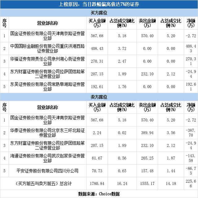 卖一席位是国金证券天津南京路证券营业部,该席位卖出金额为570.40万元,占该股总成交额的5.2%。该营业部三个月内上榜15次,实力排名第266。