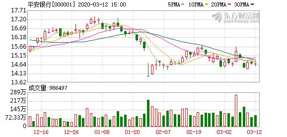 2020年3月12日,平安银行A股开盘14.65元,全日小跌0.07%,股价收报14.68元。自2020年3月10日以来,平安银行收盘价连续三日收于年线(250日均线)之上。