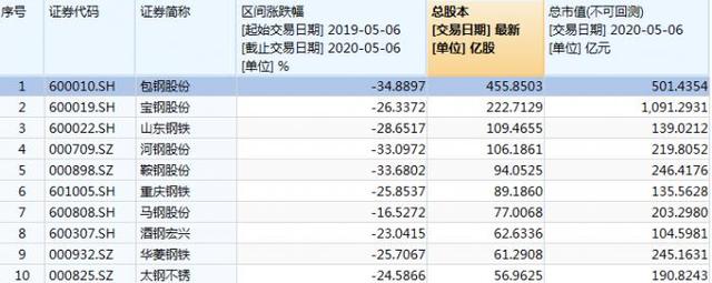 导致公司股价账期低迷不振的主要原因是,包钢股份排名行业第一的总股本。