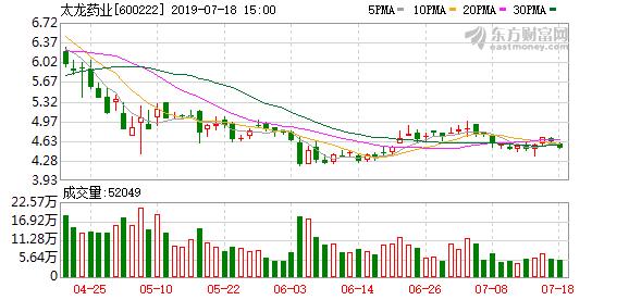 2019年10月8日,太龙药业A股开盘4.55元,全日大涨5.25%,股价收报4.81元。自2019年9月27日以来,太龙药业收盘价连续三日收于年线(250日均线)之上。