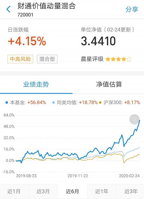 看到最近6个月的基金走势还是不错的,增幅达到56.84%。