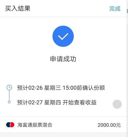 通过以上的分析,就我的情况来说,我的基金还没有涉及5G的内容,财通成长的重仓股与银河创新的有点类似,因此我选择投资海富通。今天新购买的海富通资金如下图。