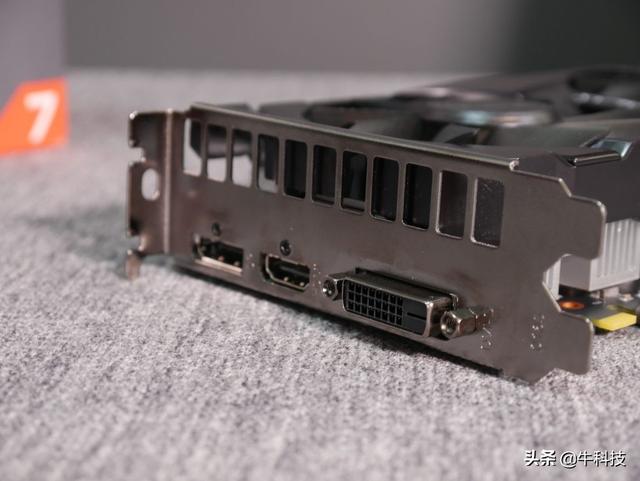 侧面只有三个接口,一个DP、一个HDMI、还有一个DVI,相对于公版的显卡来说少了一个Type-C接口。