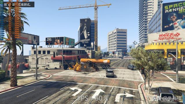 首先是GTA5,游戏效果设置为1080P最高特效,8倍MSAA,跑了线下的基准测试,1070整体保持在60帧左右。