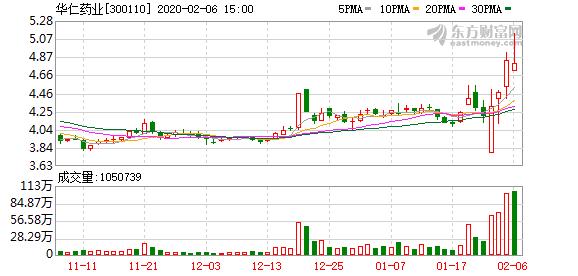 2020年2月26日,华仁药业A股开盘4.61元,全日下跌3.20%,股价收报4.54元。自2020年2月24日以来,华仁药业收盘价连续三日收于年线(250日均线)之上。