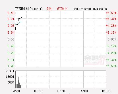 2020年7月1日金融界网站讯 今日09时39分,正海磁材出现异动,附加大幅拉升6.24%,创历史新高(前复权价格)。截至发稿,该股9.2元/股,成交量9.2485万手,换手率1.14%,振幅4.62%,量比23.5。