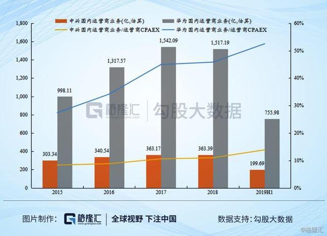 国内同行竞争情况,我们可以做个简单的计算,分析下中兴和华为的市场率情况。因为国内运营商CAPEX总共就三家,我们按简单的国内收入占比*运营商业务占比,大致估算过去几年华为和中兴的国内运营商市场率情况。