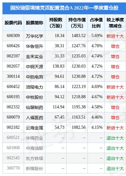国投瑞银境煊灵活配置混合A的前十大重仓股如下: