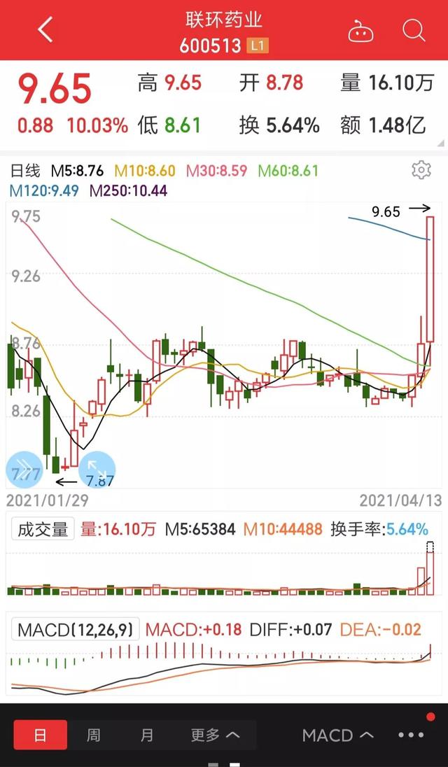 原文标题:以联环药业为例,阐述利用日线两小阳战法,提前预判起涨点!