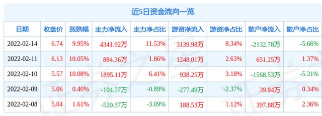资金流向数据方面,当日主力资金净流入4341.92万元,游资资金净流入3139.98万元,散户资金净流出2132.78万元。近5日资金流向一览见下表:
