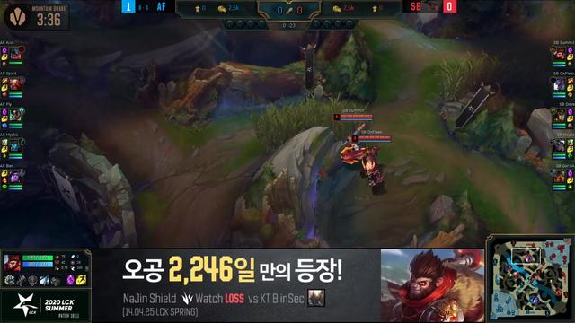 在6月17日LCK夏季赛SB vs AF的第二场比赛中,SB上单Summit选出悟空,这也是猴子时隔2246天重新登上LCK的赛场。