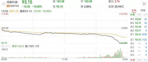 3月24日,闻泰科技(600745)惨遭核按钮,尾盘不到30分钟时间里急跌近6个点,随后被死死摁在跌停板,成交金额约26亿元。