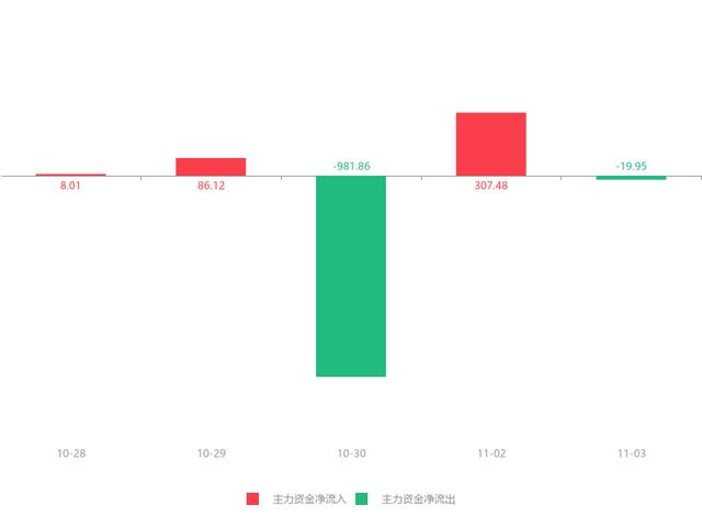 昨日(2020-11-02)该股净流出金额-238.79万元,主力净流出-86.15万元,中单净流出-22.04万元,散户净流出-130.60万元。