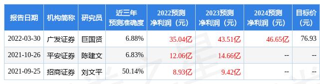 证券之星数据中心根据近三年发布的研报数据计算,招商证券刘文平研究员团队对该股研究较为深入,近三年预测准确度均值为50.14%,其预测2022年度归属净利润为盈利8.93亿,根据现价换算的预测PE为47.25。