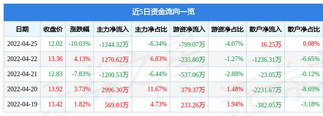 资金流向数据方面,4月25日主力资金净流出1244.32万元,游资资金净流出799.07万元,散户资金净流入16.25万元。