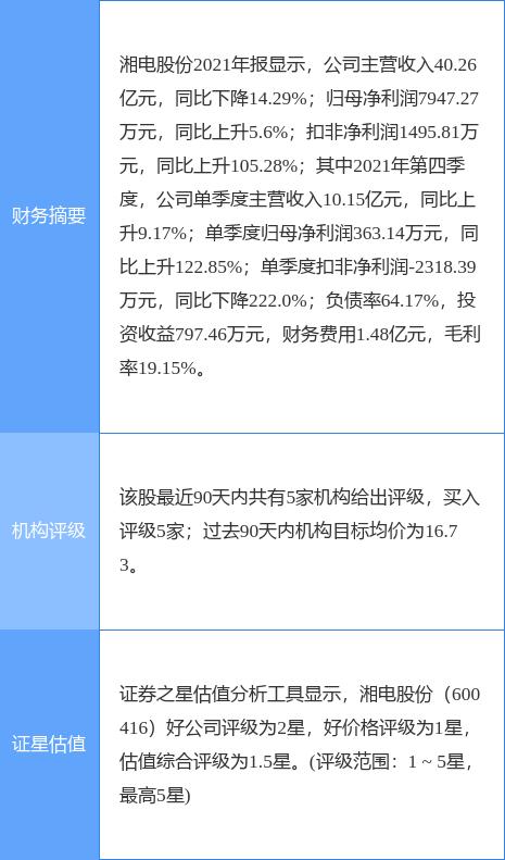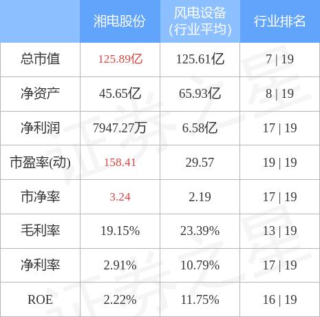 湘电股份主要指标及行业内排名如下: