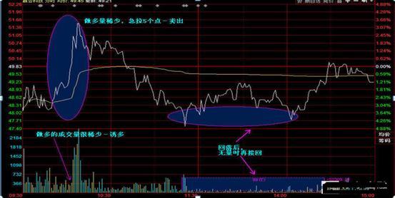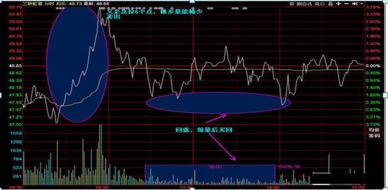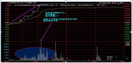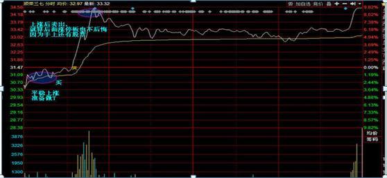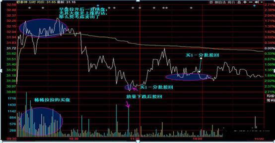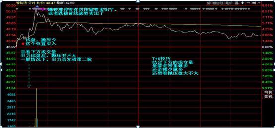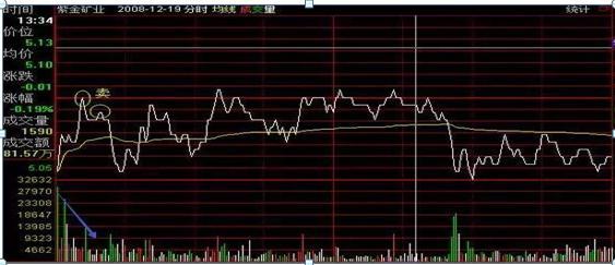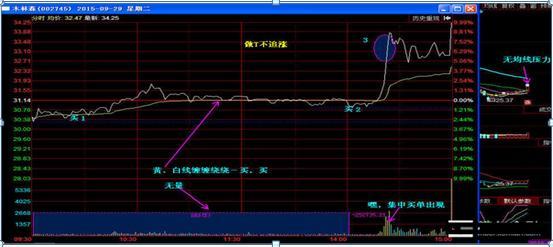 假如买2错过机会的,不要追了,等直线拉升6个点左右,不能再往上冲的话,可以考虑吧手中的股票卖掉一点,等它下跌调整时再买进(这种就叫倒T,先卖后买)。这里顺便说一说直线拉升,常常会伴随着做多成交是少量的,即是说主力拉升之前测试抛压,俗称“主力试盘”这个位置 一看有压盘,主力就不会轻易上;如果拉一波,看抛压不大;那么主力肯定会发动第二波。