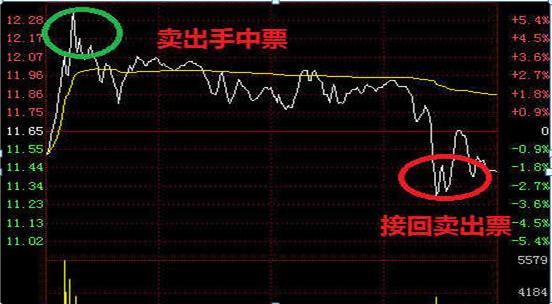 如下图,早盘急拉卖出手中股票做T,遇到跳水再买进。