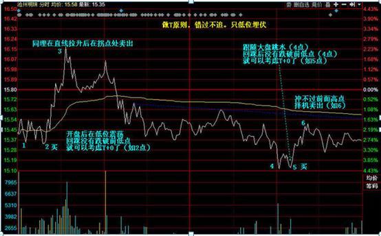 如下图“沧州明珠”跟上面是一样的含义。做T原则,错过不追,只低位埋伏;
