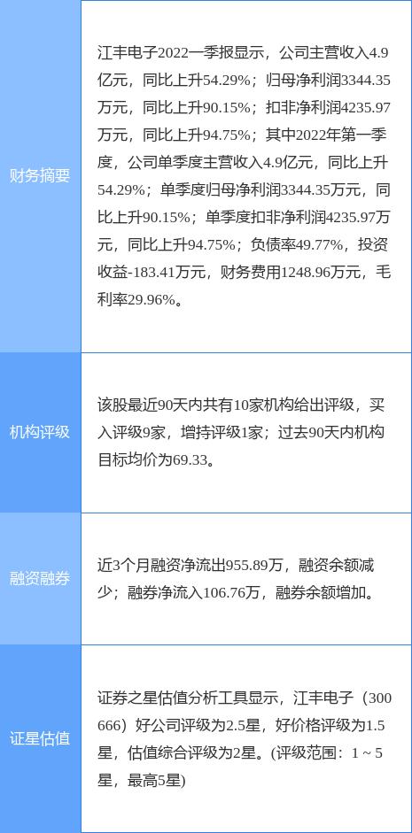 本文摘要:今日江丰电子(300666)涨6.95%,收盘报54.95元。2022年4月26日,开源证券研究员刘翔,罗通发布了对江丰电子的研报《公司信息更新报告:一季报业绩高增长,成长动力充足》,该研报对江丰电子给出“买入”评级。研报中预计2022-2… …