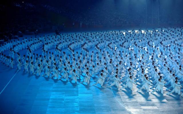 图为2008年8月8日,在北京奥运会开幕式上,来自少林塔沟武术学校的学员进行武术表演。新华社记者刘大伟摄