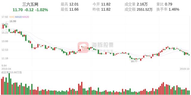 三六五网今日下跌1.02%,股价为11.70元,成交金额为2551.52万元,成交2万手,换手率为1.46%。