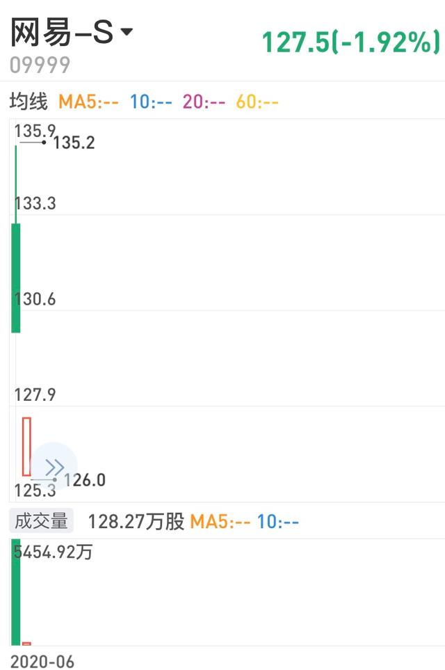 6月11日上午9点30分,网易正式登陆香港联交所,开盘价为133港元,较发行价123港元上涨8.13%。截至下午4点收盘,网易港股上市首日涨幅达5.69%,收于130港元。
