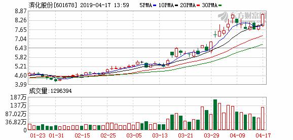 4月18日,滨化股份盘中最高价8.73元,股价连续两日创近一年新高。截至收盘,滨化股份最新价为8.38元,下跌3.79%,全日成交金额达到9.79亿元,换手率7.47%。根据最新收盘价进行计算,滨化股份总市值为129.42亿元。