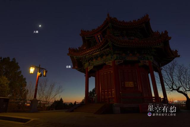 第二天同一时刻,这两颗行星与如钩残月会再次“同框”,只是星月的相互位置有些许变化。“残月的相对高度会低一些。”修立鹏说。