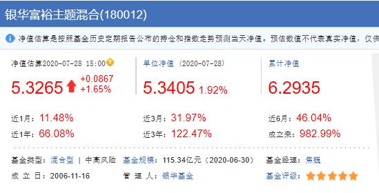 1、180012银华富裕主题混合,基金类型:混合型 | 中高风险,基金规模:115.34亿元(2020-06-30),基金经理:焦巍,成 立 日:2006-11-16,基金评级:五星级
