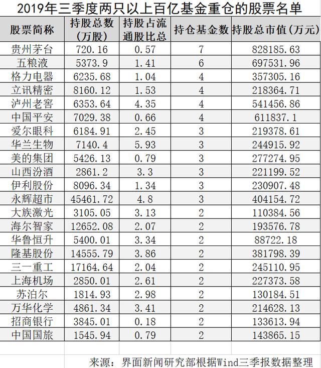 另一方面,将近两千亿的总规模,决定了它们对市场的天然影响力。百亿基金一出手,茅台都要抖三抖。这届百亿基金究竟买了哪些股票?我们来看一下: