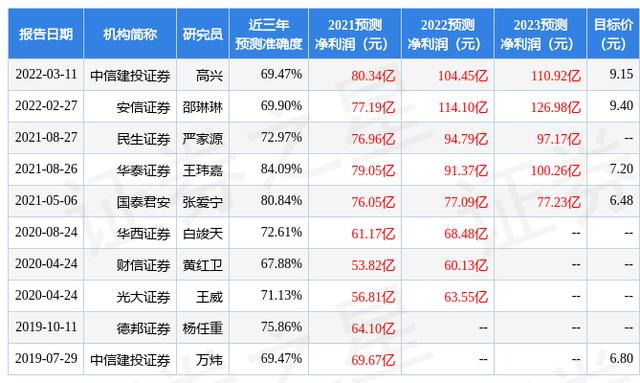 证券之星数据中心根据近三年发布的研报数据计算,华泰证券王玮嘉研究员团队对该股研究较为深入,近三年预测准确度均值高达84.09%,其预测2021年度归属净利润为盈利79.05亿,根据现价换算的预测PE为17.84。