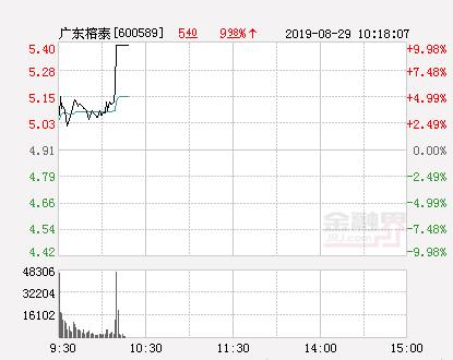 金融界网站8月29日讯 今日广东榕泰开盘报5.07元,截止10:10分,该股涨9.98%报5.4元,封上涨停板