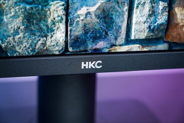 下面我们来看下HKC T2751U正面外观的细节部分,底部边框部分的居中位置,显示器设置了一个纯白配色的品牌LOGO。下面的底座采用前宽后窄的梯形造型,边角采用圆角过渡,触摸手感较为舒适。