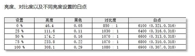 在色温一致性方面,这款显示器在50-100%亮度下,白点色温在6600-6900之间,表现尚可。