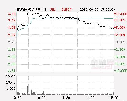 金融界网站6月3日讯 今日吉药控股开盘报2.94元,截止10:05分,该股涨10%报3.19元,封上涨停板。