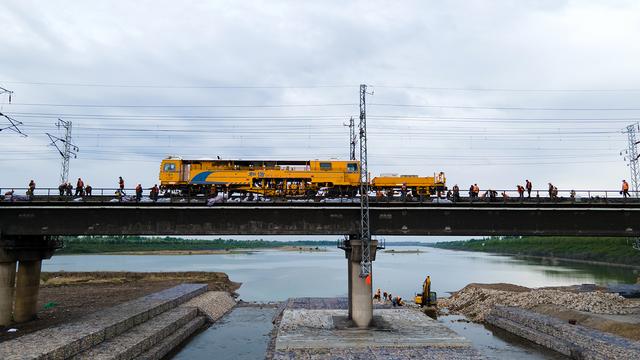 集中修施工期间,大秦线潮白河大桥,小型机械进行桥梁清筛作业。张炯摄