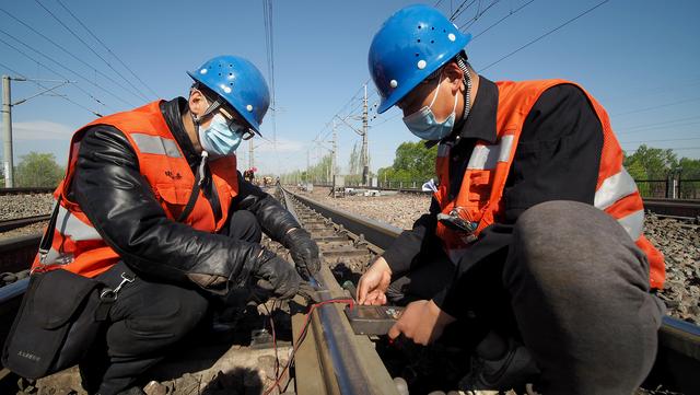 集中修施工期间,电务段职工在进行轨道电路绝缘测试。张炯摄